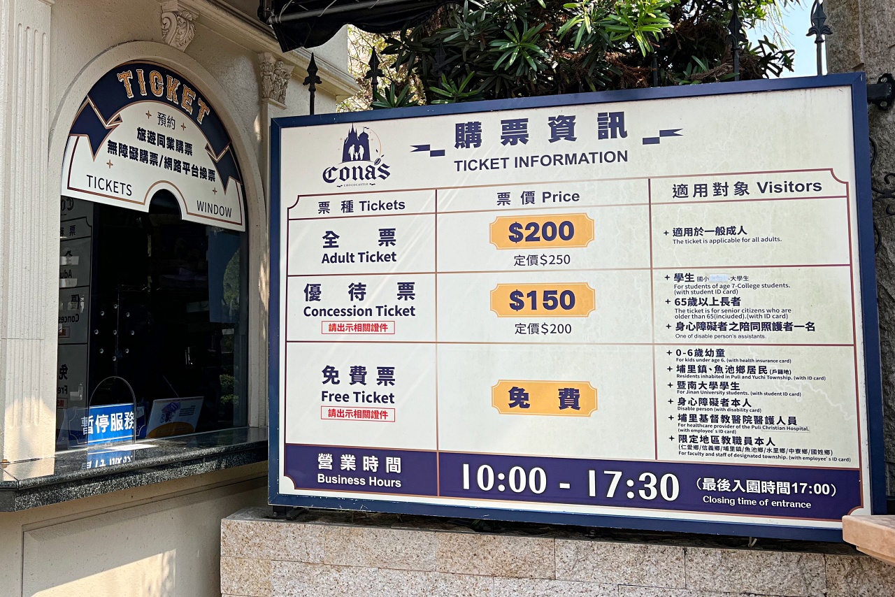 優待票(需出示相關證件):150元(國小~大學,65歲以上長者,身心障礙陪同照顧者一名)