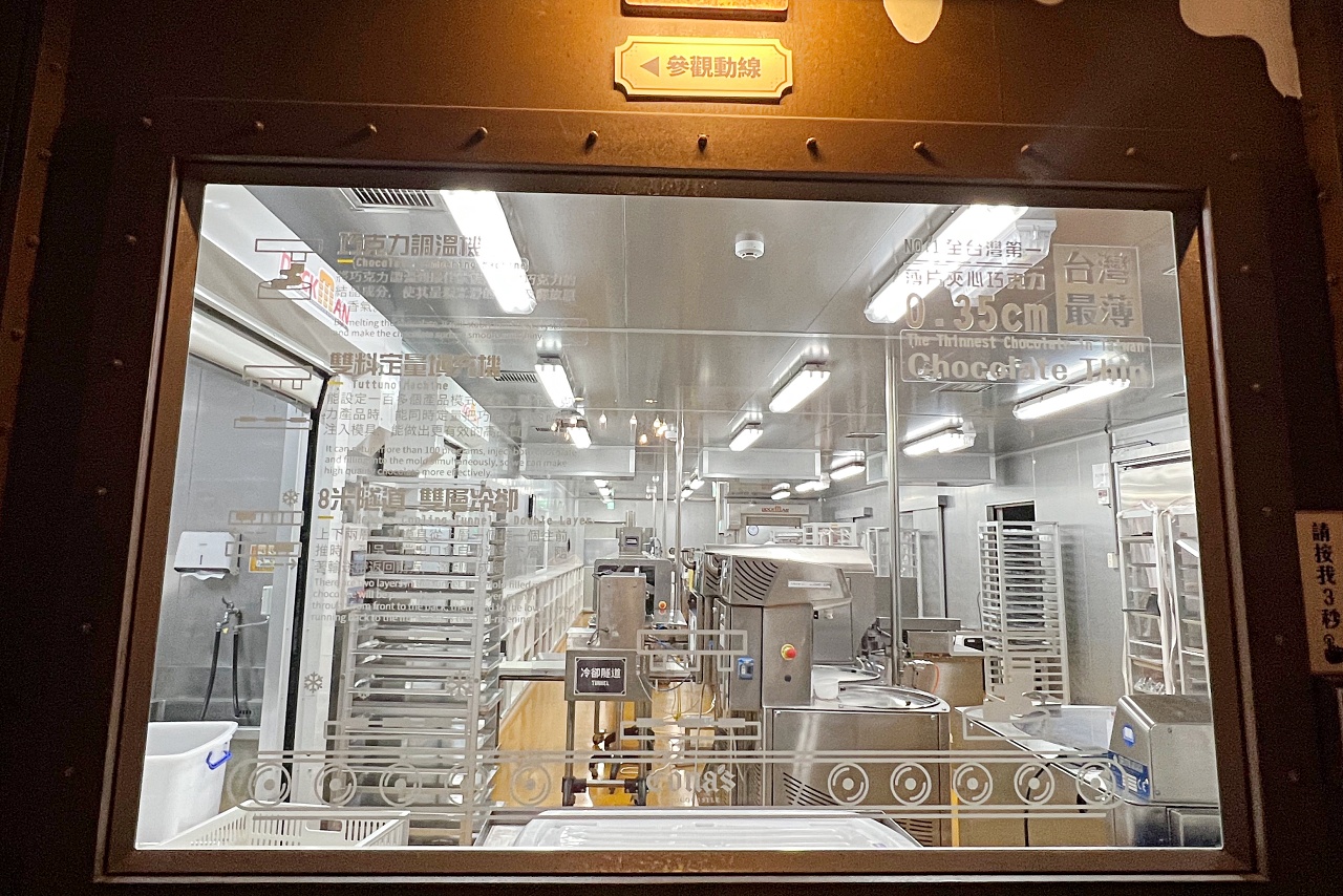 把工廠內的生產線流程變成公開的透明窗景,外部以船艙造型呈現,讓遊客透過透明玻璃更一覽無遺,從製作、包裝、巧克力師傅的手工作法,更加了解一顆顆美味巧克力的製成是要經過好幾道的工序才能成就好吃的巧克力。
