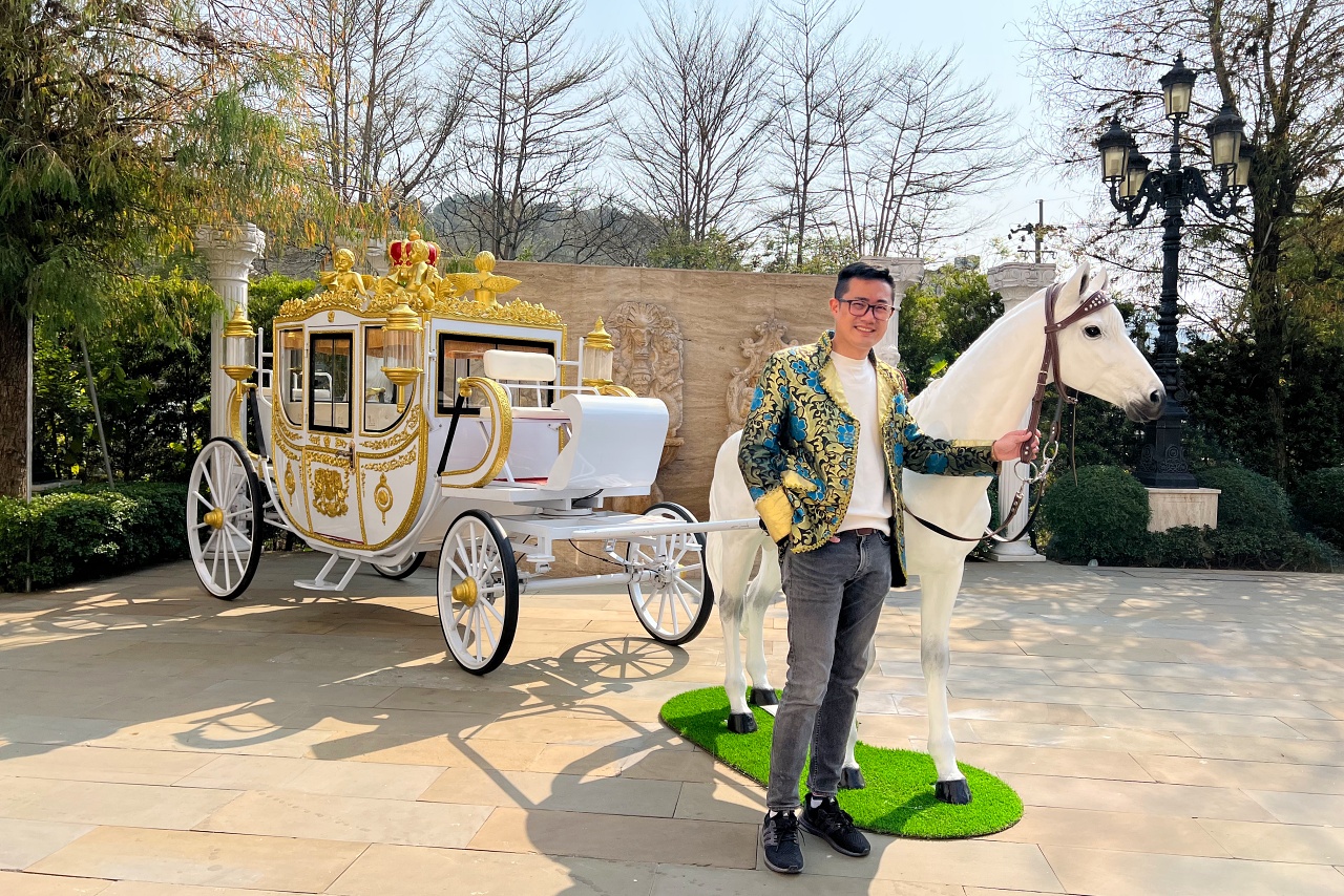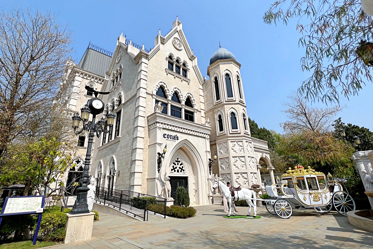 整個城堡外觀讓人錯覺身在歐洲,從外牆石材到雕花、城堡前面的白色馬車、花園裡的藝術雕像,每一處的細節都令人驚艷。其實豬飛很常因為出差工作來到埔里,但經過路過就是沒進來過,【Cona’s妮娜巧克力夢想城堡】的初體驗從入園開始就讓我目瞪口呆,不用飛出國就能享受這座美麗的歐洲莊園。
