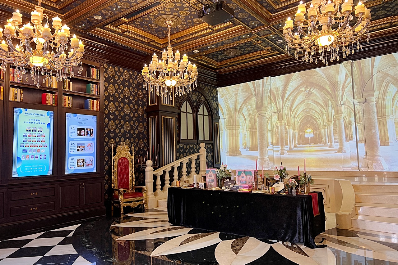 推開城堡大門後,眼前華麗的空間設計讓我們「哇~」的一聲,這裡根本就是霍格華茲城堡!華麗又浮誇的黑色調,從地板壯觀的大理石到天花板的水晶吊燈,來這裡就像是生活在城堡裡,人人都瞬間變成公主跟王子了。