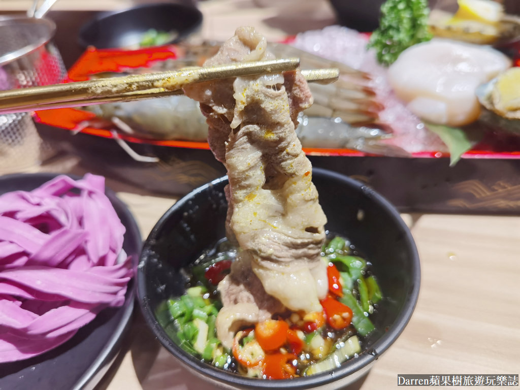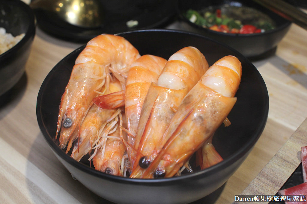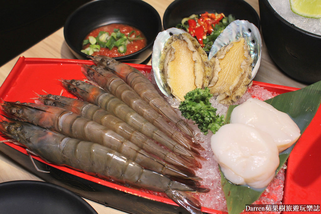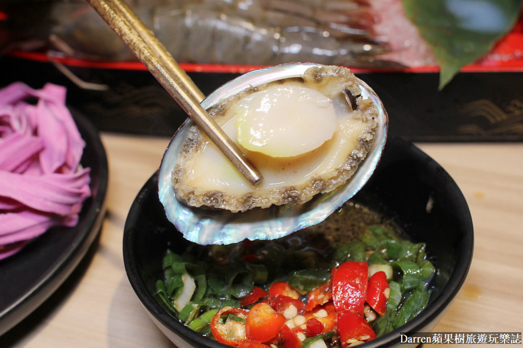 日本生食級干貝,不用煮太久筷子可以輕易穿過就好,入口口感水水嫩嫩滿嘴海味,九州小鮑魚吃起來軟Q爽脆沒腥味,肉質帶著甜味,另外野生海大蝦以及南美甜白蝦很深得我心,新鮮又大隻,兩種脆彈度有所不同,但都是走飽滿Q彈路線,非常飽口啊~