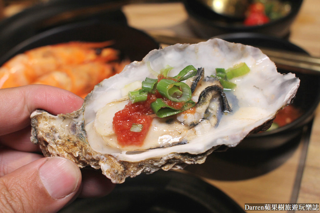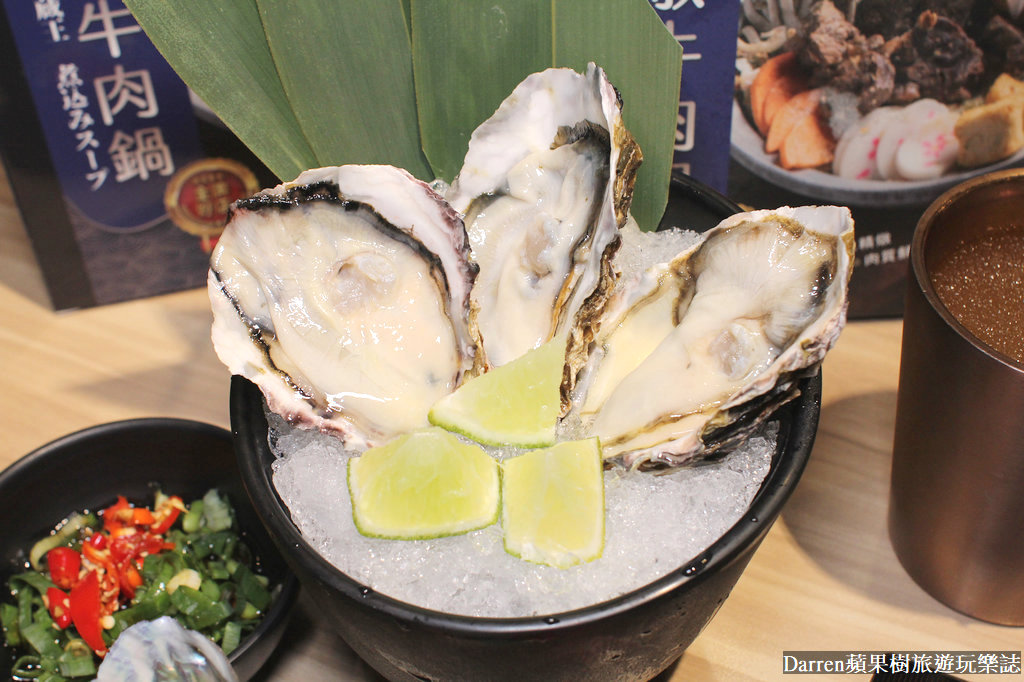 另外菜盤換了帶殼生蠔3顆,新鮮生蠔肥嫩個頭又大,建議稍微涮一下,然後像我搭配五味醬,真的會爆汁超嫩口很好吃