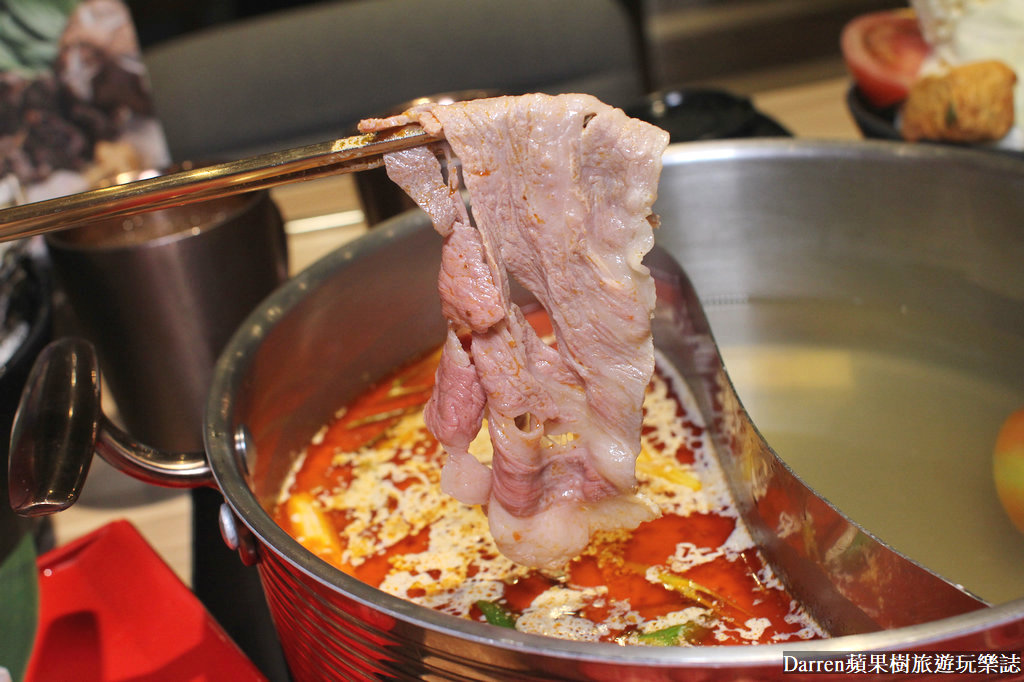 樹小編選擇把菜盤以及綜合菇類,通通都放在原味蔬菜湯底,同屬性食材跟湯底,越煮越好喝也很適合,另外麻辣牛奶湯底,使用麻辣加上初鹿鮮乳,辣度溫順不會太嗆,很適合搭配肉品