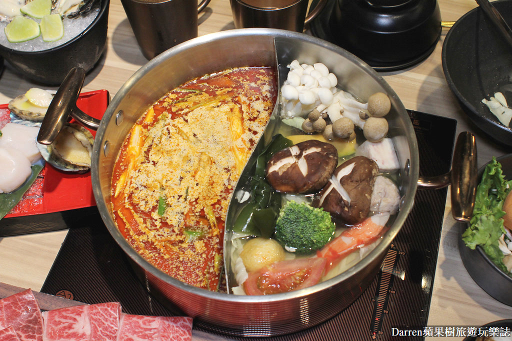 藏王極上鍋物光是湯頭算算只有20種之多,主打天然蔬果熬煮,不添加任何化學調味,這次雙人鍋湯頭樹小編選擇了麻辣牛奶湯底+原味蔬菜湯底,想說一邊以涮肉品為主,另外一邊要來煮海鮮和蔬菜等等
