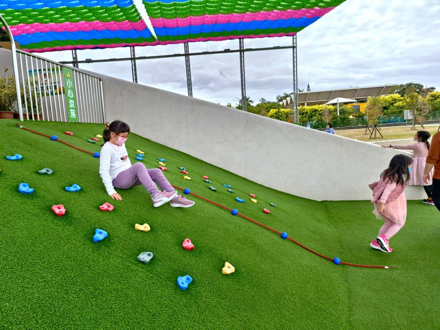 ▼一旁還有攀爬設施,也是小朋友的最愛~~但小倆口怎麼當成草皮在滑(笑)!