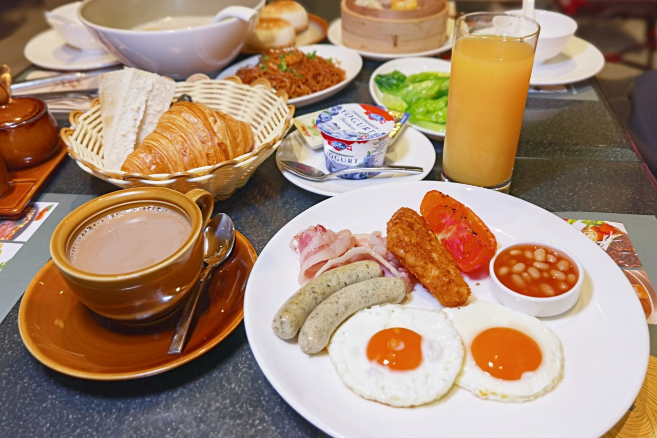▲我的西式早餐,大概是在台灣一直買不到蛋的原因,有著雙太陽蛋的餐盤一上桌,我馬上露出感動的表情,簡單擺盤配上港式奶茶,來到澳門第一餐這樣吃也令人開心啊。