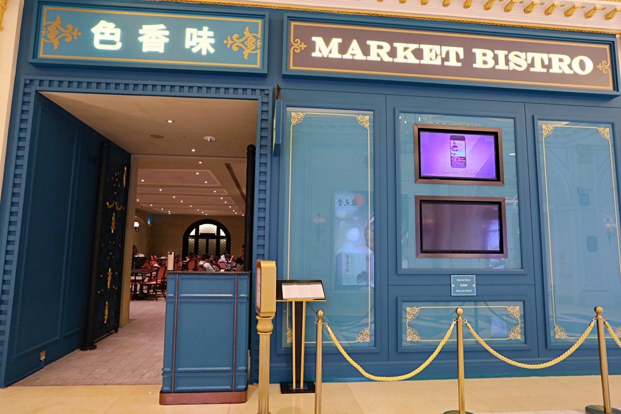 住宿的早餐是在飯店內「色香味」餐廳用餐,與澳門巴黎人娛樂場一線連接,以亞洲料理為主,提供24小時供餐服務。早餐、午餐、晚餐、宵夜通通都有。餐廳空間有著巴黎街道咖啡廳的風格,很容易以為自己身在巴黎。