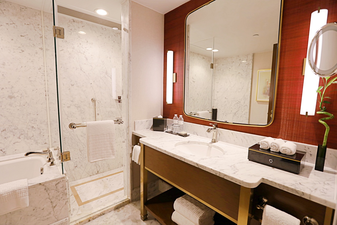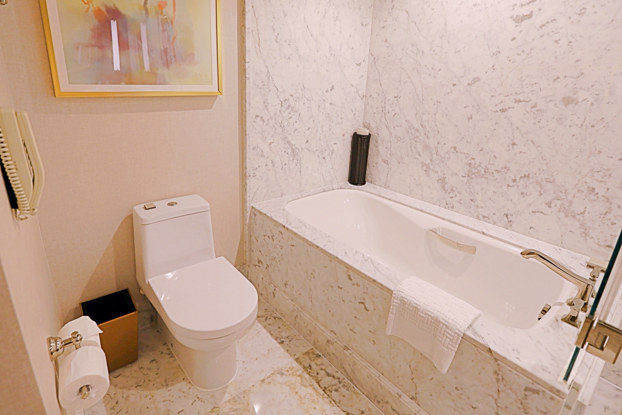 ▲浴室以白色系大理石打造,乾濕分離的設計,還有出門度假不可少的浴缸(我超愛泡澡!!)。備品提供基本的牙刷、梳子、潤膚乳、浴帽等等。