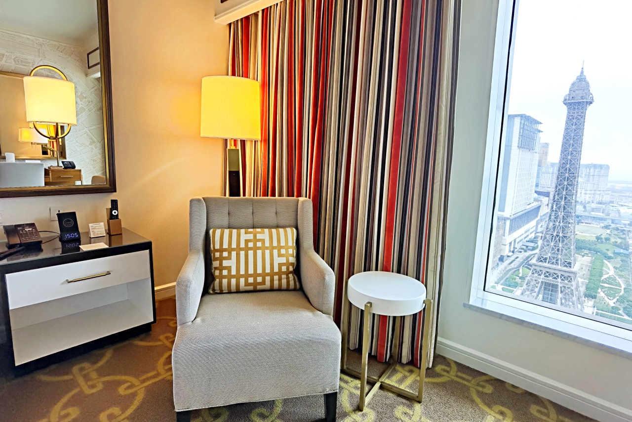▲ 從房間就可以看到白天和夜晚的巴黎鐵塔美景了,沒想到巴黎人酒店這麼廣大,要把酒店走透透必須花上半天時間了。
