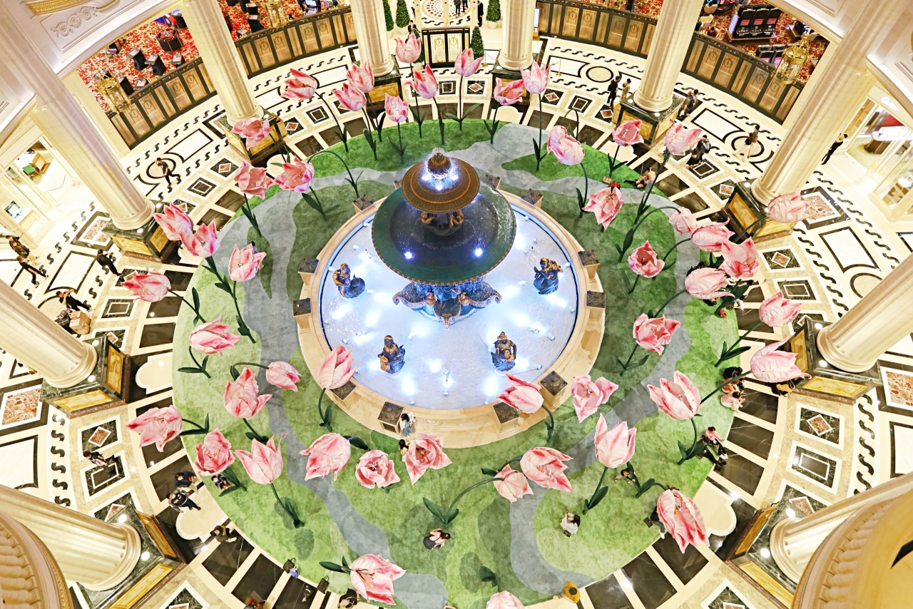 每年的3-5月正值鬱金香開花的季節,澳門巴黎人酒店把超巨大鬱金香花海盛開在酒店大廳裡,提供遊客24小時免費拍照。