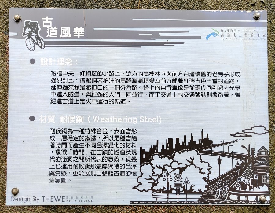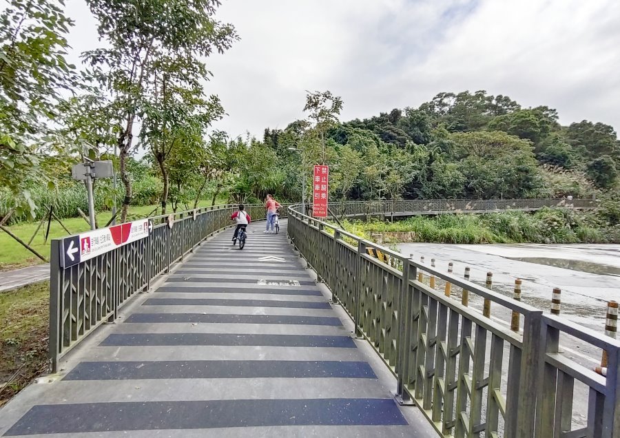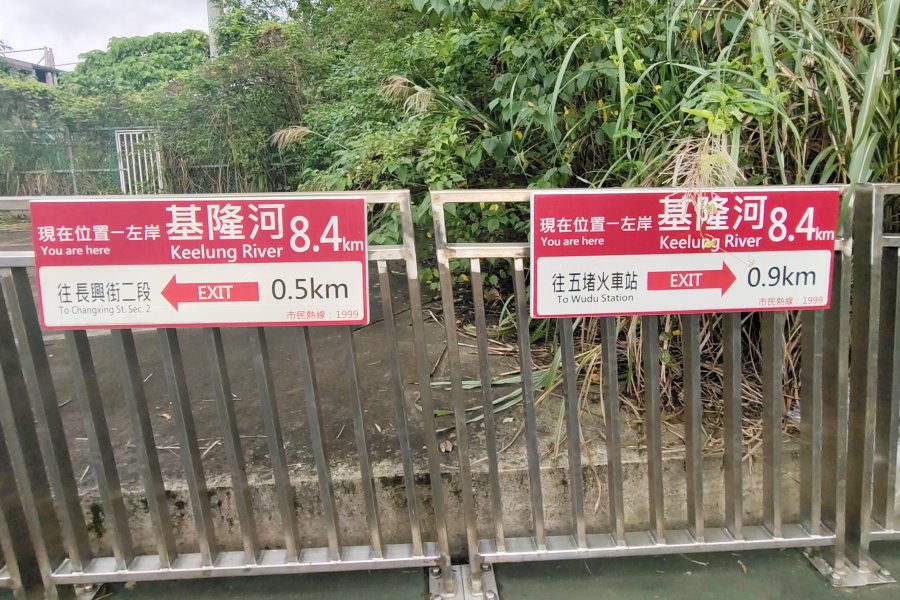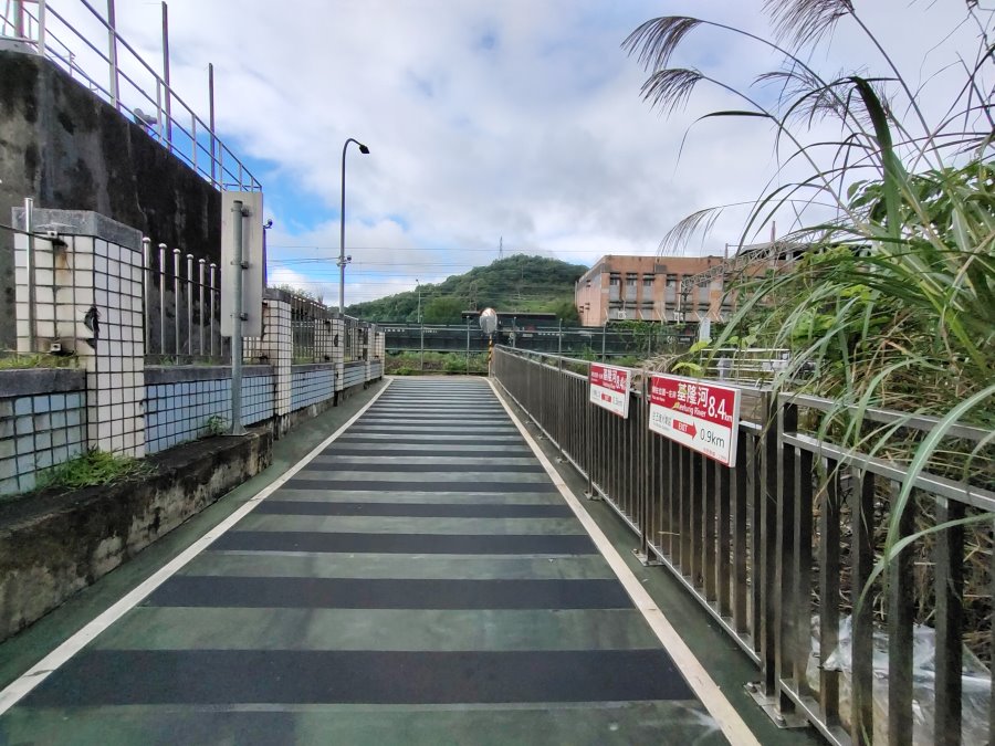 ▼路上不時也會有指標,所以不太擔心會迷路~沿著騎就對了;因為我們的目標是五堵鐵路隧道,所以就往長興街二段方向繼續騎!
