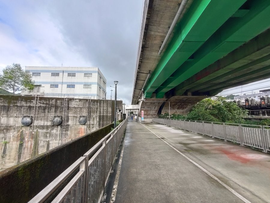▼YouBike租借就在五堵車站前,租好後過馬路直接上引道就是自行車道囉~左轉是往星光橋方向,右轉則是往五堵台鐵舊隧道,我們的目標是五堵台鐵隧道所以原本要往右騎,不過當天去的時候右側封路施工,所以我們又騎下引道直接往車站右手邊騎!
