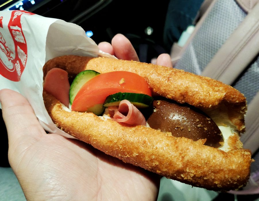 ▼終於買到啦~~熱騰騰的營養三明治在飢腸轆轆的時候特別想趕快咬一口啊!