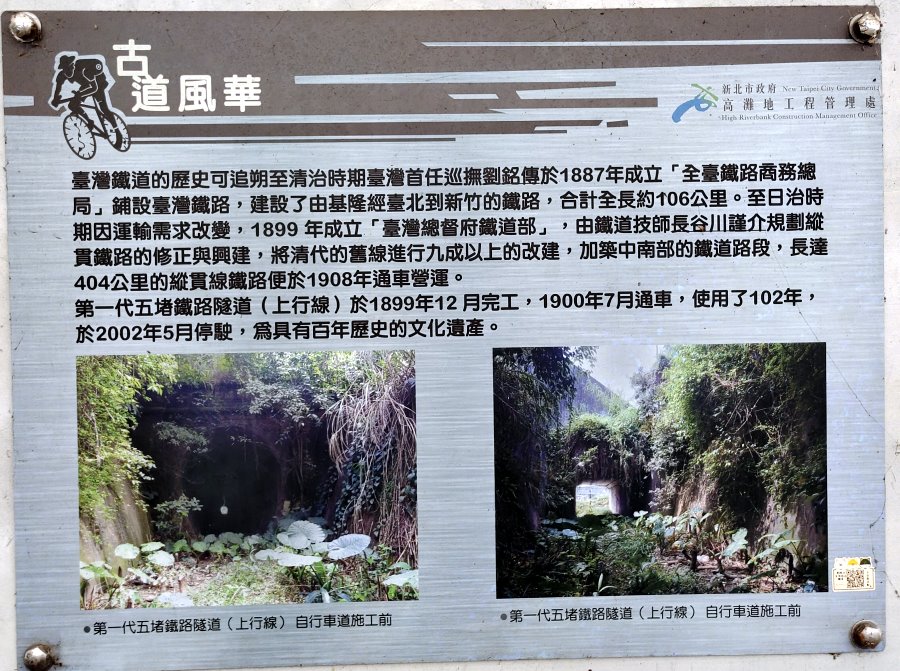 ▼五堵鐵道舊隧道是日據初期所闢建,總長為184公尺,共使用了102年的歲月,到2005年5月中旬停用,後來拆除鋼軌、枕木、電車線,廢棄十餘年後,自2018年開始闢建自行車道,2019年完工後又重見天日,特別保留古色古香的磚造圓拱造型,加上照明與地面自行車道,讓大家可以自在地穿梭隧道、感受百年風華!