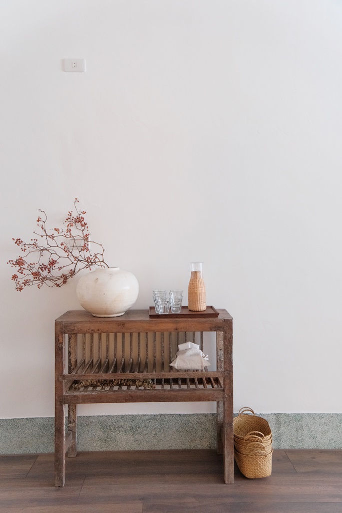 鑲嵌在白牆裡的舊木櫃,以及各式復古老件,看著這些充滿生活感的老東西