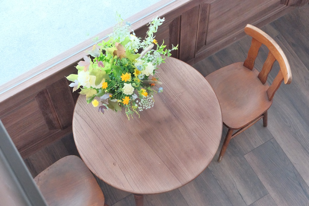 一樓靠牆的區域有兩桌座位,每一桌都有自己的特色!