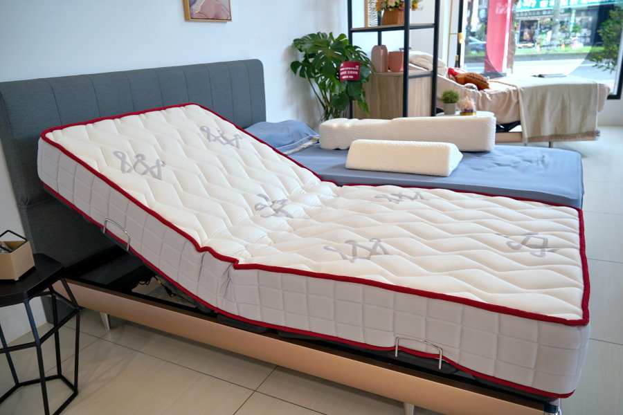 ▼這張電動床的表布採用的是天絲布,搭配2 cm涼爽棉,也是廠長為創辦人吳爸爸打造的電動床墊,躺起來跟A2又是完全不同的躺感,大家一定要親自來試試才知道!不過他們家的電動床都很透氣舒適,不管是久臥的病友、需要被照顧的朋友或是追求舒適感的朋友都很需要,讓大家可以在最大限度內不要依靠別人也能自己來,同時又能兼顧舒適與自在感!