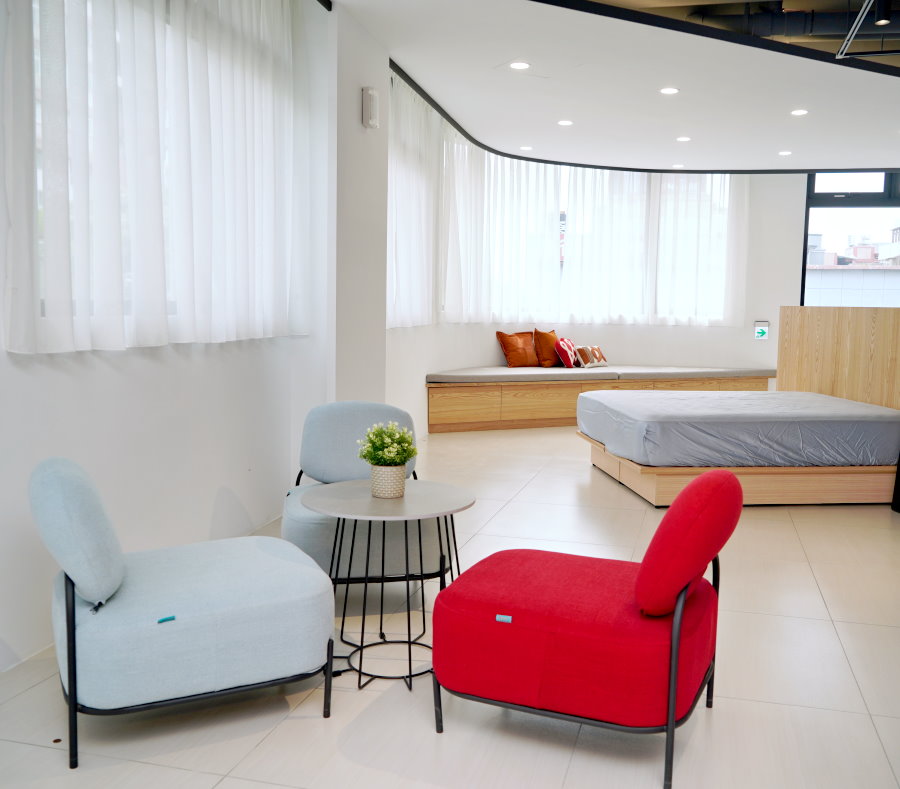 ▼除了一樓展示空間之外,二樓還有其他床墊展示,逛累了也可以坐下來稍作休息!