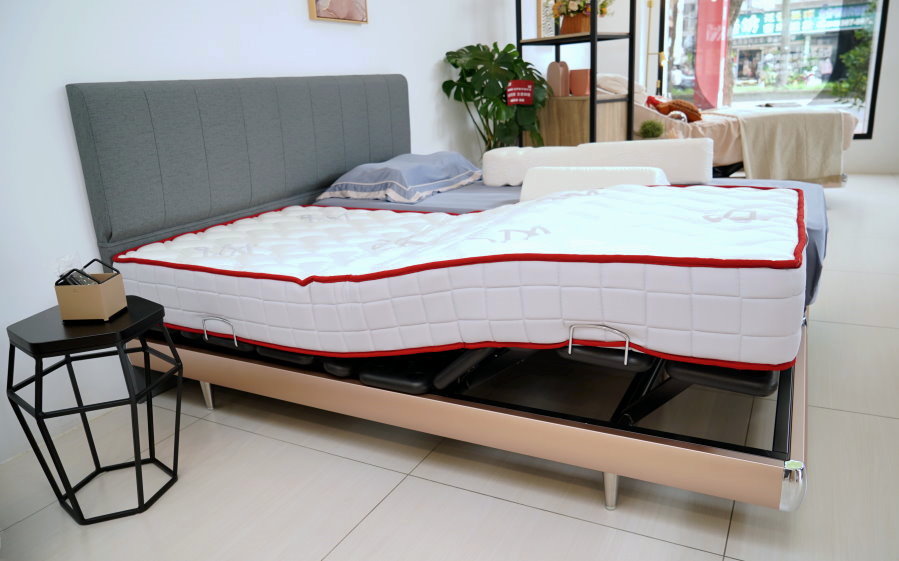 ▼這張就是他們家的頂級電動床A2,而且是有獨家專利的!大家或許有躺過電動床,但一定沒躺過彈簧床墊的電動床~~他們家是全台第一間用不同彈簧結構做出電動床上墊,讓電動床更具支撐力,軟硬度也更能隨自己的身形與喜好來選擇;而且還能搭配不同的襯材,除了乳膠、泡棉之外,還能有更多元化的襯材選擇!