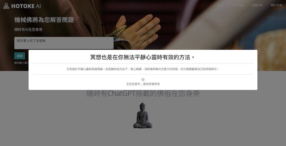 如果你也有對人生的疑惑想找人聊聊但卻不知道找誰? 或許可以跟這位 AI 佛祖聊聊。