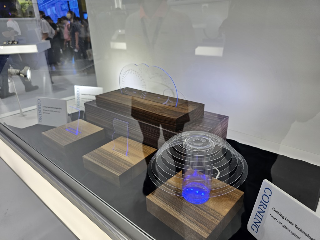 康寧應用最廣泛的產品自然是 Corning Gorilla Glass,這次也展出 Corning Gorilla Glass Victus 2,採用全新玻璃成分,除了有著上一代的抗刮特性,還通過落摔在混凝土粗糙表面上的測試。另外還有採用康寧獨家 ColdForm 冷彎成型技術的 AutoGrade Corning Gorilla Glass,讓汽車顯示器製造商能夠在室溫下將玻璃彎曲,打造出曲面車內顯示器,在車輛生命週期內提供如智慧型手機般精密、耐久與更優異的光學效果。
