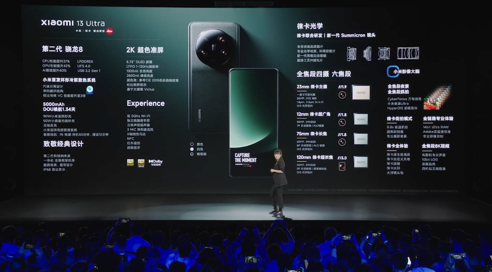 此次 13 Ultra 的重點特色就是它的相機。小米與徠卡聯合研發了新一代的 Summicron 鏡頭,採用全新的光學鏡片架構,8P 非球面高透鏡片。鏡頭方面與徠卡合作了四顆鏡頭、雙長焦與六焦段。