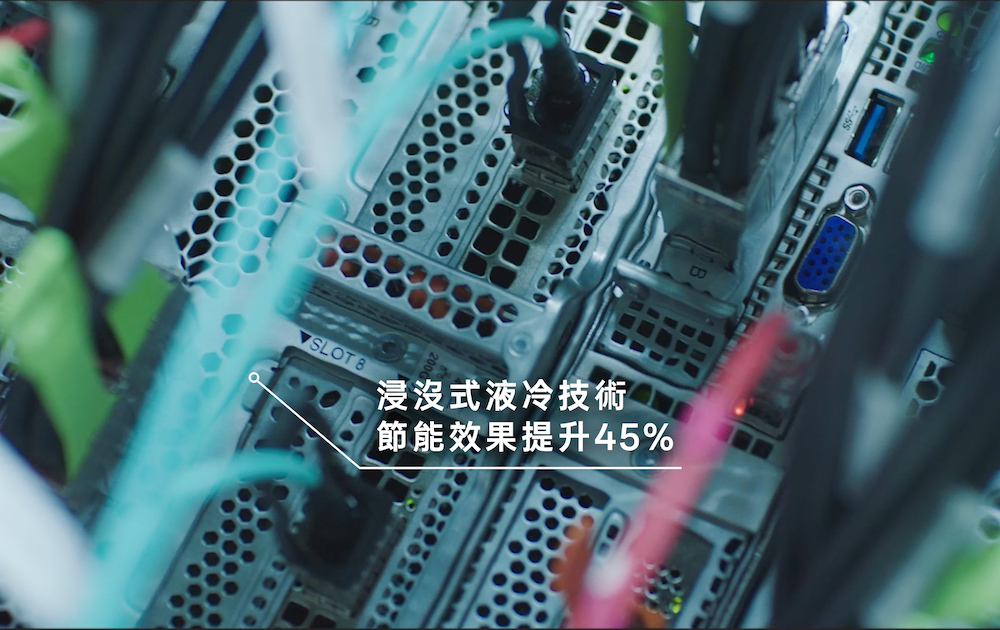 浸沒液冷設備的節能嘗試初見成效,節能效果提升了45%,數據中心電源使用效率(PUE)低至 1.15,處於行業領先水準。