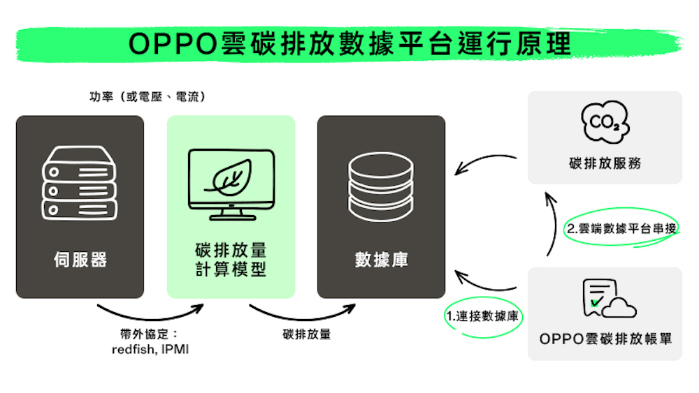 為全面打造綠色智慧引擎,OPPO 智慧雲(大灣區)數據中心還打造了 OPPO 自研雲類資源碳排放數據平台,完整收集並展示全球自研雲機房及自有伺服器相關的碳排放數據,並推出 OPPO 雲碳帳單服務,每月推送給所有雲用戶,幫助他們了解自身的碳排放情況,尋找更綠色的成長方式。