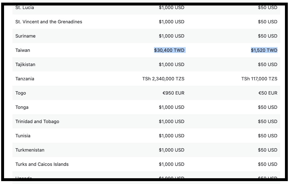 Twitter 全球收費資訊