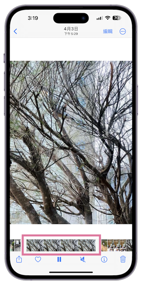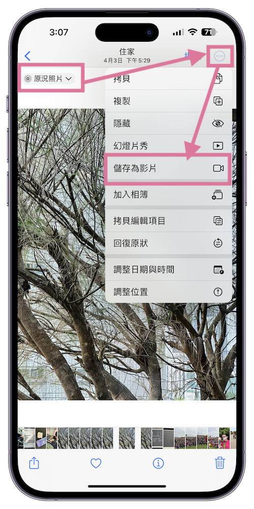 原況照片」時卻只能看到靜態的某一幕,卻也有點可惜。但沒關係,我們可以把「原況照片」轉成影片分享!