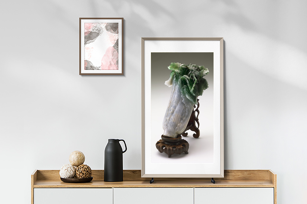 曾被台灣旅遊觀光局納入2022年外國人最愛台灣十大景點的國立故宮博物院,典藏豐富的珍稀文物,如今透過與三星的合作,用戶可隨時隨地在家欣賞院內極具代表性的雋永藝術。The Frame 美學電視專為藝術愛好者打造,具備德國 VDE 認證的金屬量子點顯色技術及雙視光增豔科技,完美重現細膩的場景畫面;並搭載新型消光黑面板,具備減少反射、抗指紋等特性,獲得UL無眩光國際認證。無論是晶瑩剔透的翠玉白菜、色澤油亮與紋理分明的肉形石,以及人聲鼎沸的清院本清明上河圖,皆可於個人空間完美呈現,每日依照心情策展,還原藝術品的真實色彩與感動。