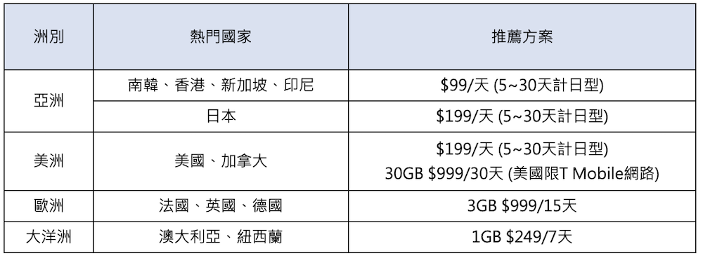 遠傳針對最受國人喜愛的日、韓、新、泰、菲、印尼等熱門旅遊國家,也推出超值漫遊優惠,搭配 5 天以上的旅遊天數,吃到飽每天只要 99 元起、固定流量定量包,最低每天只要 20 元起;其他像是歐、美、紐、澳等國家,吃到飽一天也只要 199 元起、定量包最低每天也只要 35 元起,提供多元的上網方案選擇,符合每一個旅客的上網需求。