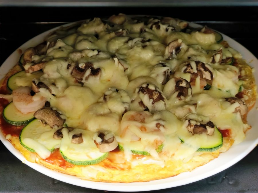 ▼高麗菜煎餅披薩其實做法不難,食材也很彈性,家裡有什麼就加什麼~~剛好最近家裡有櫛瓜、蘑菇、雞蛋跟好市多買的冷凍蝦仁,加進去配料就很豐富了,這次是清爽路線,如果有德國香腸、火腿、鳳梨等配料也都可以視個人喜愛添加,味道更重也會更好吃!首先先將配料都準備好,等等下鍋就很輕鬆啦~~高麗菜先洗淨後切成絲狀,櫛瓜洗淨切成圓薄片,蘑菇洗淨切成片狀,雞蛋打成蛋液狀再加點鹽巴、黑胡椒調味,蝦仁解凍後先用鹽巴、黑胡椒醃漬備用,因為我們是用好市多的冷凍蝦仁,有時候來不及解凍的話我們就會先微波一下,所以有些蝦仁有熟有些沒熟,不過沒關係等等還會再烤一次,口感也不會影響太多!