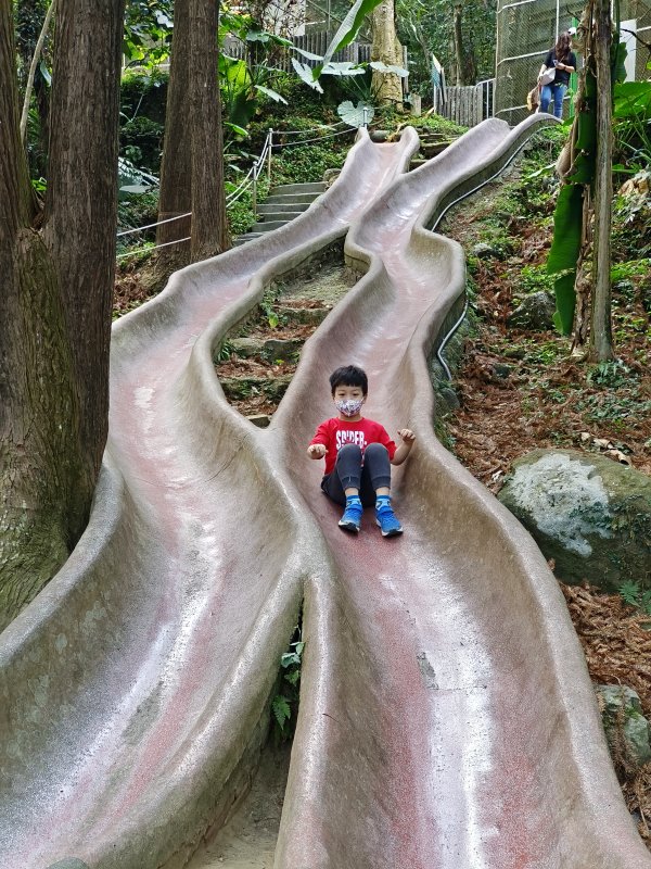 ▼溜完滑梯三口組也快沒力了,看來應該是走不回去~~加上時間較晚,松鶴園我們就略過了,等之後有機會再來參觀!