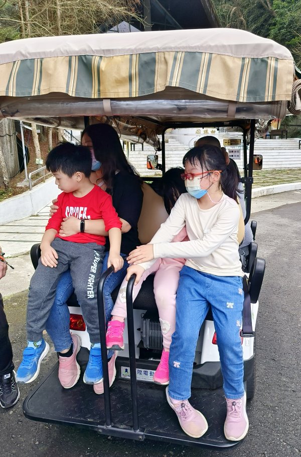 ▼電動接駁車需要另行購票,車體有點像是高爾夫球車的概念,所以座位並不多,大概可以坐5-6人左右,看到車子來大家趕快爬上車,有種得救了的感覺(笑)!