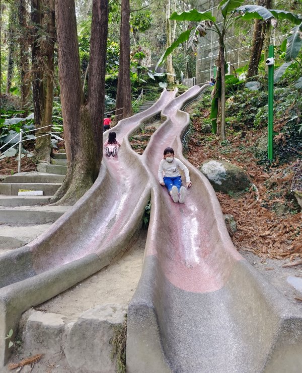 南投鹿谷景點「鳳凰谷鳥園生態園區」就位於南投鹿谷仁義路上,前一晚我們入住埔里的葉子秘境,隔天開過來玩剛剛好!這裡佔地約30餘公頃,只要銅板價就能近距離欣賞上百種珍禽異鳥及多種花草林木,讓大家都能沉浸在大自然的洗禮!此外裡頭還有小朋友最愛的森林磨石子溜滑梯,三口組光是雙滑道就溜了十幾次不誇張,整個放電放得很徹底~另外也有森林步道、瀑布、吊橋等,很適合一家大小一起來玩耍,如果真的走不動還有電動接駁車可以搭喔!