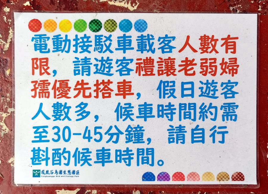 ▼電動接駁車的位子不多,所以通常會先禮讓老弱婦孺優先搭車,不過當天搭車人數不多,加上剛好有加班車開過來,很幸運地沒有等太久就有車子來了!