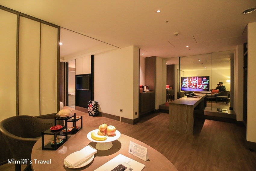 我們入住是位於晶英酒店八樓的行政小西門和洋套房,沉穩色調與柔和燈光,營造獨特現代空間美感,客廳和臥室之間有滑動式屏風可以區隔,還有有雙人浴缸浴室,榻榻米也可以加軟墊變成2大2小的家庭房,家庭親子入住也沒問題。