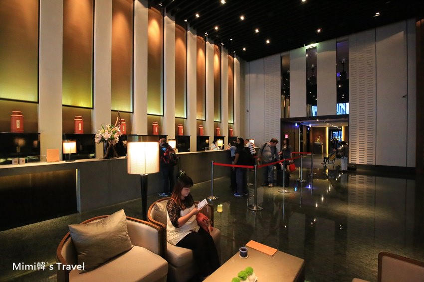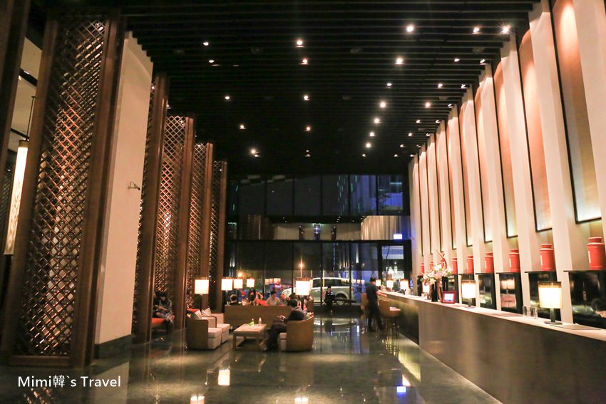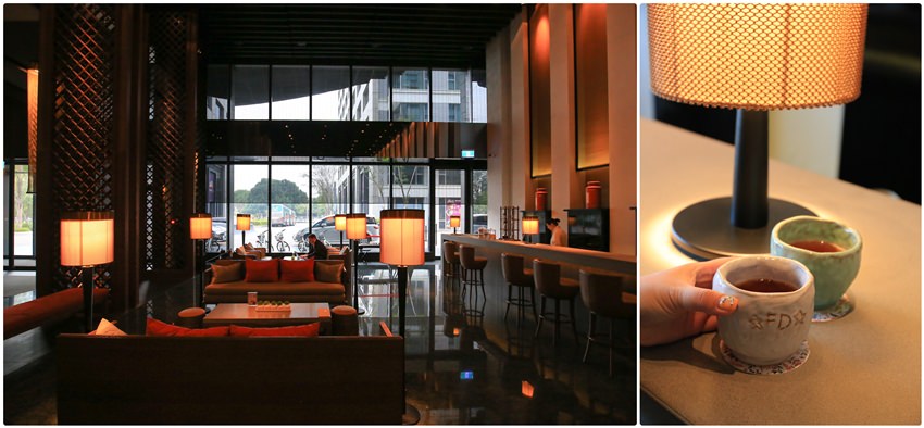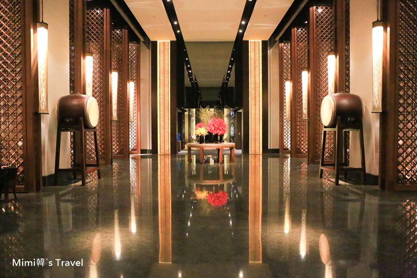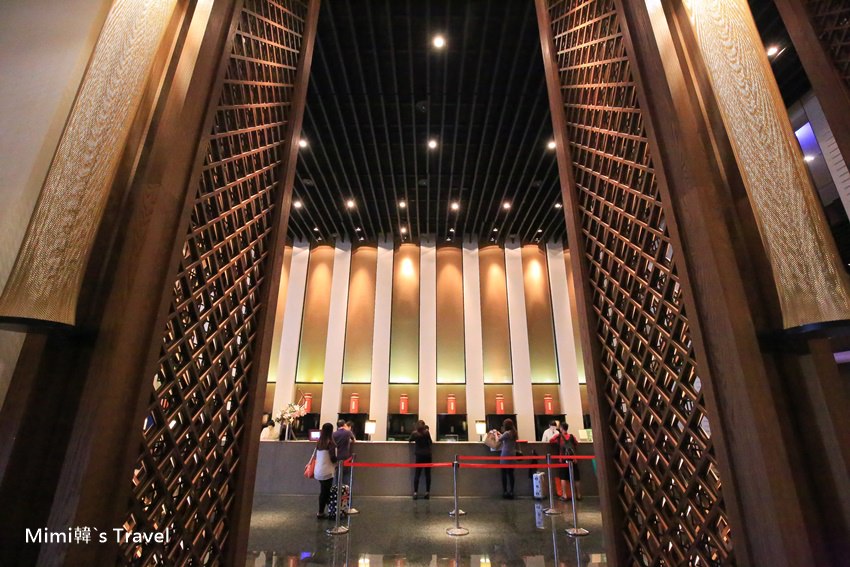 走進台南晶英酒店Lobby,挑高的空間與結合儒風文化意象的設計,像是請十鼓打擊樂團製作的大鼓、整片正菱形格子的窗框、櫃台後方則是特別請老茶店打造的茶罐,整體帶著一種低調奢華的氣勢。住房的客人非常多,這天就算是平常日還是得要排隊Check in,但櫃台好幾個處理速度也是滿快的。