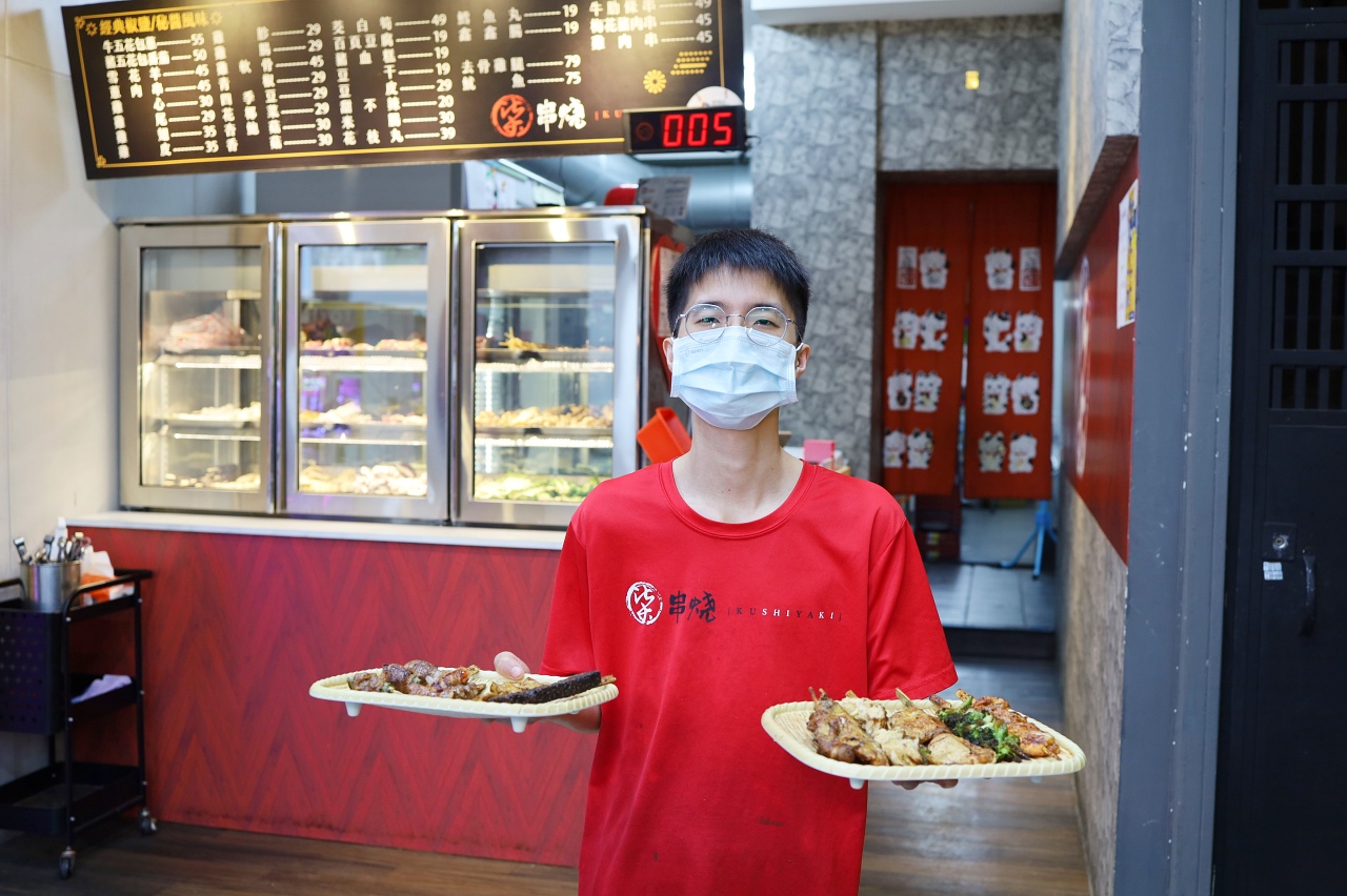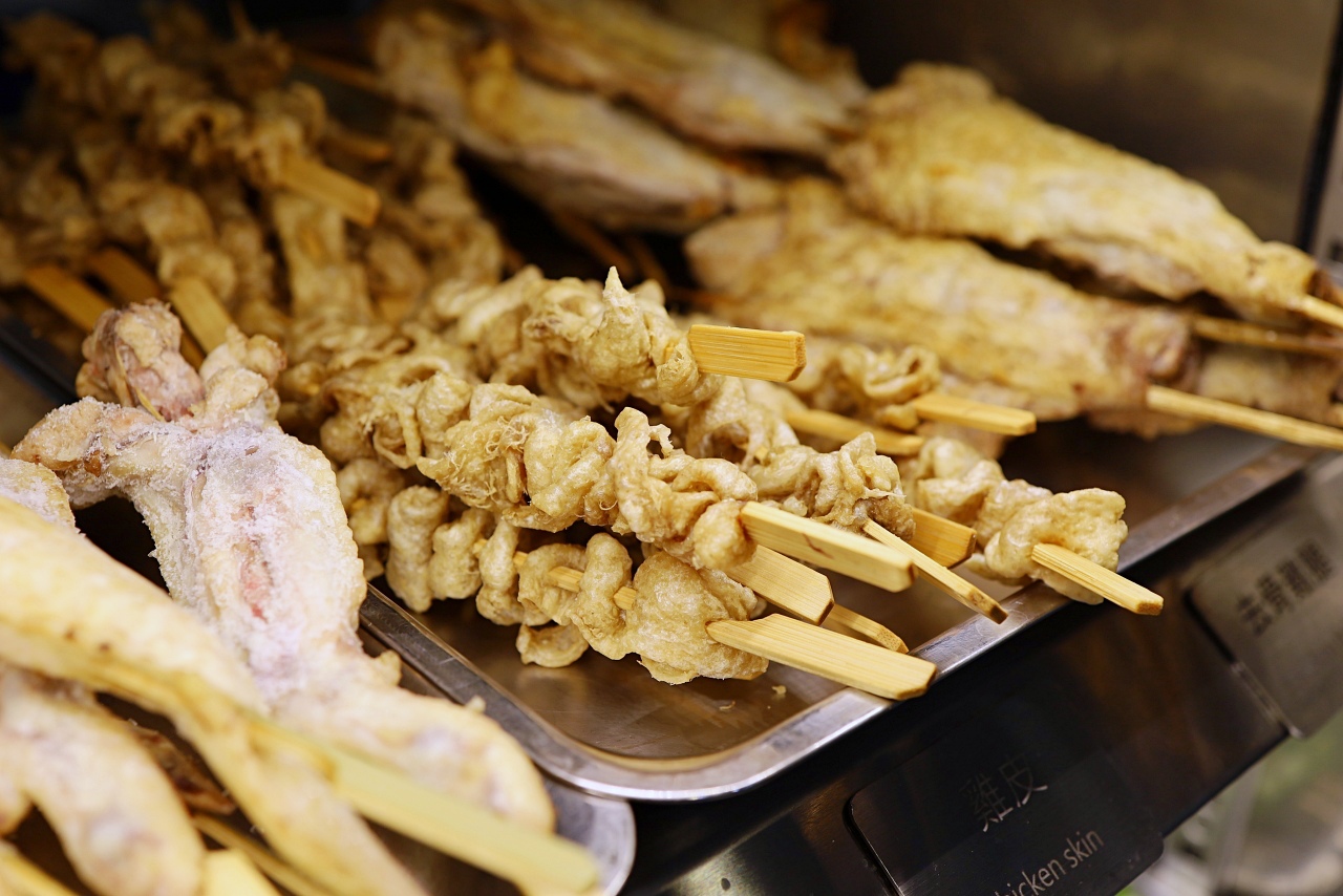 店員拿到我的餐點後,迅速的把各個烤串放進油鍋快速炸過,這個動作也是讓烤串可以在高溫油鍋裡面過油後,縮短燒烤的時間,才能維持juicy口感。