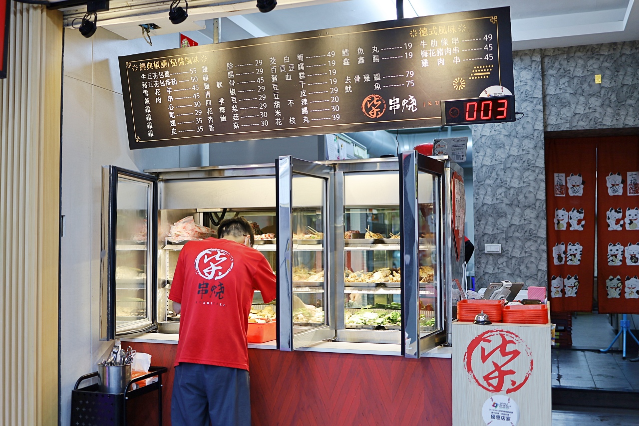 食材櫃裡面一目了然的整齊擺放著,每個商品都有中文+英文說明,光是這點就感覺超級貼心,畢竟逢甲商圈也是知名的觀光夜市,對於來台中玩的外國遊客,真的是很棒的服務。如果你也常常吃串燒,就知道這家店每天的訂單量有多大了,能夠擺了滿滿的冷藏櫃,而且放眼望去的每一串都弄的乾淨整齊,新鮮度沒話說,不只是吃平價也吃新鮮,難怪goole map評論會這麼高。