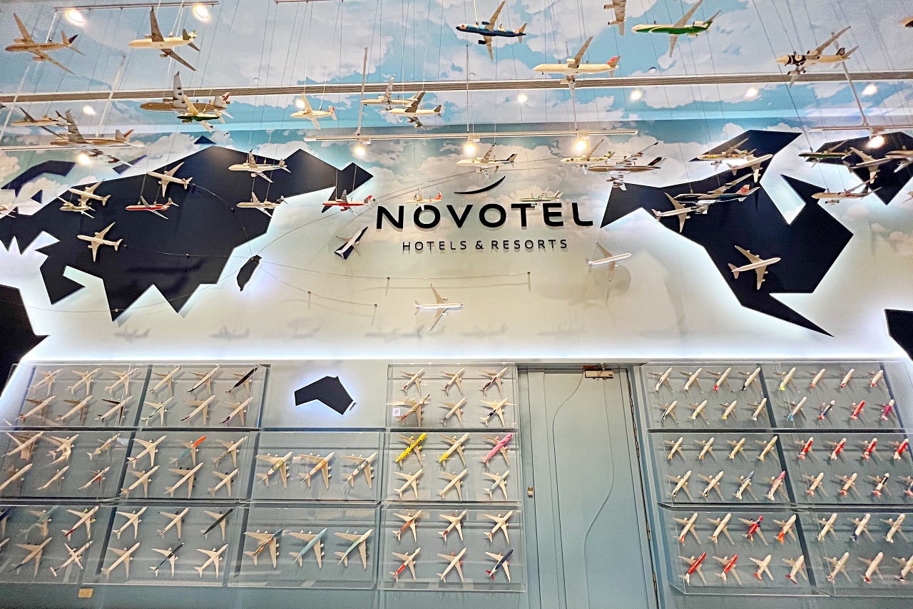 如果你問我,出國前要準備什麼?那我會說最重要的是機場接送跟提早住一晚。對於常出國的朋友,如果能前一晚在機場週圍住一晚,隔天再不疾不徐的去搭機,是一件很幸福的事情。這是豬飛在今年初的跨年飛往日本度假,因為忘記提早訂飯店,跨年夜又飯店都滿房,最後在機場過夜的重要心得!【台北諾富特華航桃園機場飯店 (Novotel Taipei Taoyuan International Airport) 】是距離桃園國際機場最近的飯店,距離機場五分鐘距離,提供免費接駁到機場的服務,目前由中華航空委由法國雅高集團經營管理。而且即日起只要憑著 China Airlines 中華航空或台灣虎航的機票訂房(限官網訂房),就享有半價優惠,這價格實在太佛心!