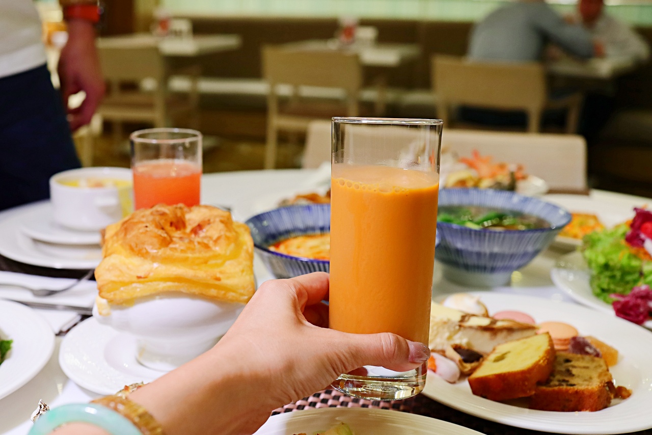 這次入住的是一泊二食住房方案,包含自助式晚餐、早餐,用餐地點在一樓的品坊。餐廳空間挺大的,來入住的這晚剛好遇到遊覽車團客,座位與座位之間不會太過擁擠,用餐起來舒適。