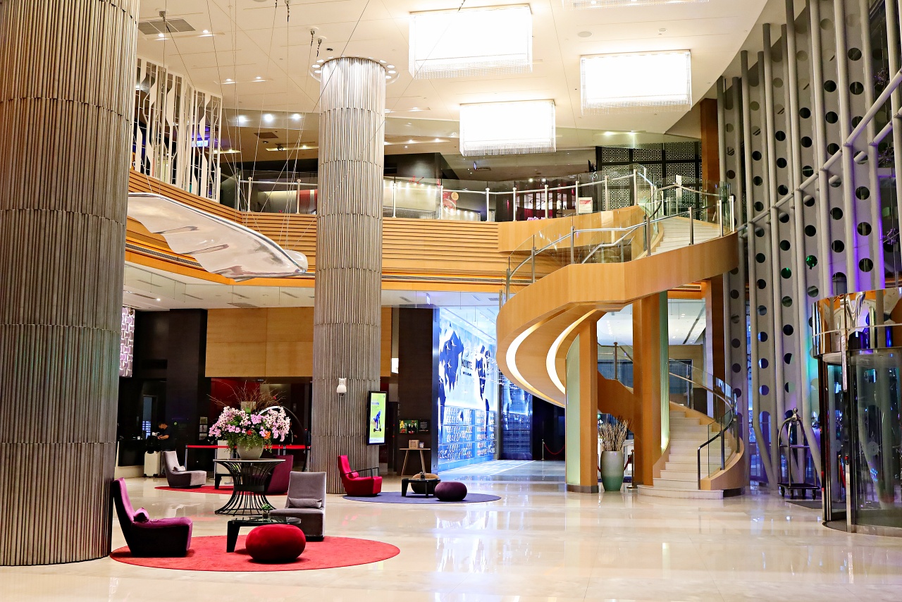 【台北諾富特華航桃園機場飯店】的位置是在房間就可以接看到飛機場的超近距離,可以從機場搭捷運到飯店(A14a機場旅館站出站就到)、或是開車抵達,飯店有室內停車場,這點很便利,入住期間可以免費停放。需要前往機場的話有免費的接駁專車,在check in 時先跟櫃檯預約即可。夜晚的飯店外觀顯得特別時尚,久聞諾富特大名,自己住過後真的會愛上,難怪身邊旅伴們都強烈推薦。更詳細前往飯店的資訊請見:官網