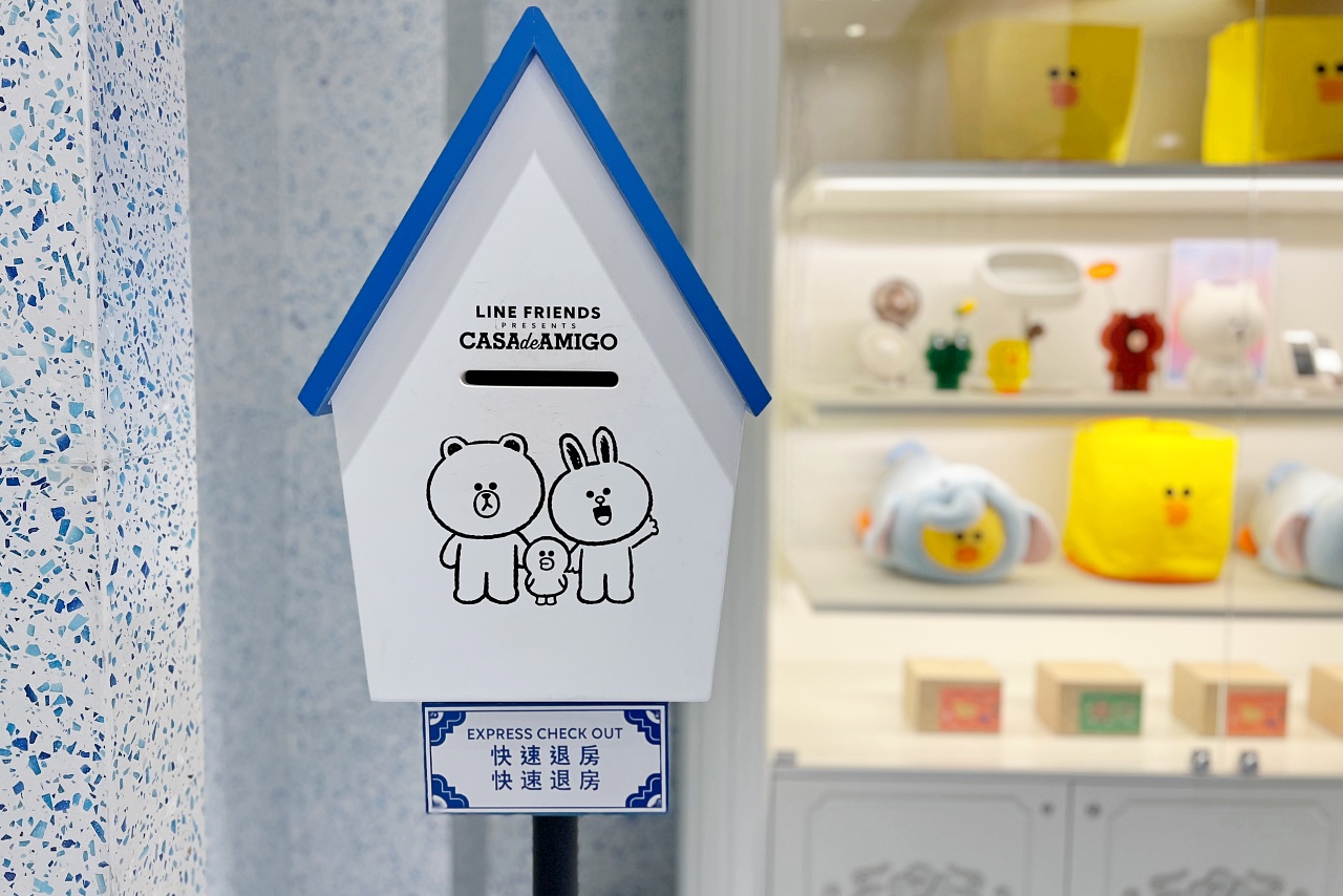 既然是LINE FRIENDS主題酒店,有相關的商品就是理所當然的,商場裡面也有一間LINE FRIENDS主題的專賣店,有興趣的朋友可以去挖寶。快速退房信箱的設計也一致性,是不是很可愛呀?