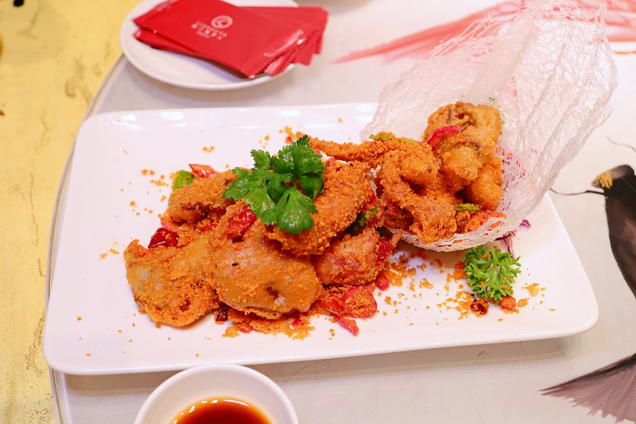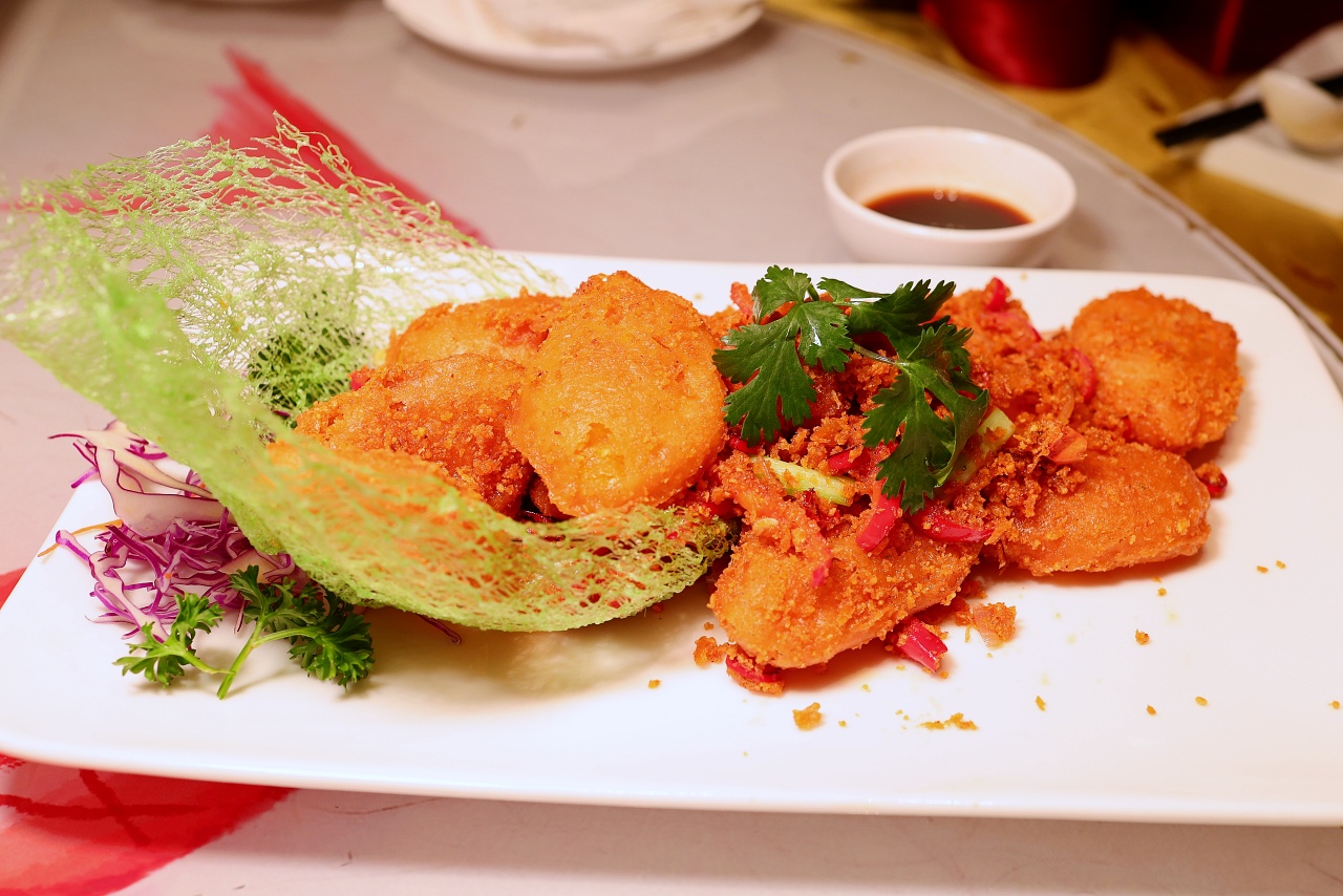帶有鹹蛋黃香味的金黃色酥炸南瓜,外表酥脆裡頭軟嫩,雖然看似簡單的作法,但吃起來脆口又不油膩,可見火侯的掌握很恰當。