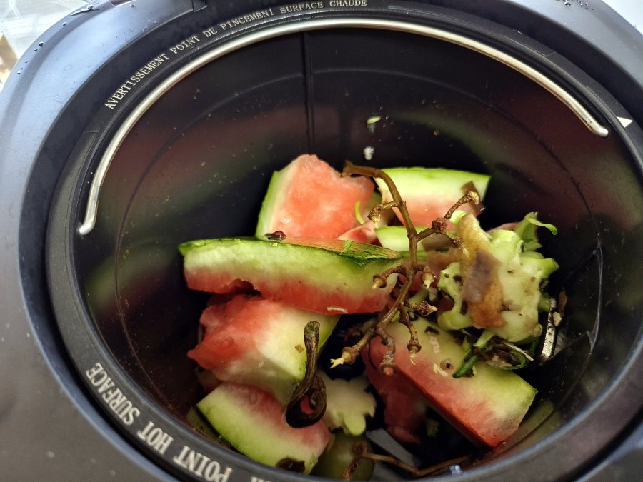 ▼依稀還可以看到西瓜的蒂頭出現在裡面~~還多了股烤蔬果的香氣,廚餘不再是讓人覺得髒髒臭臭的東西,且處理完再倒掉也能節省不少垃圾量!