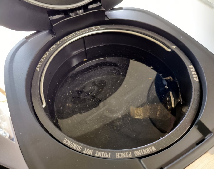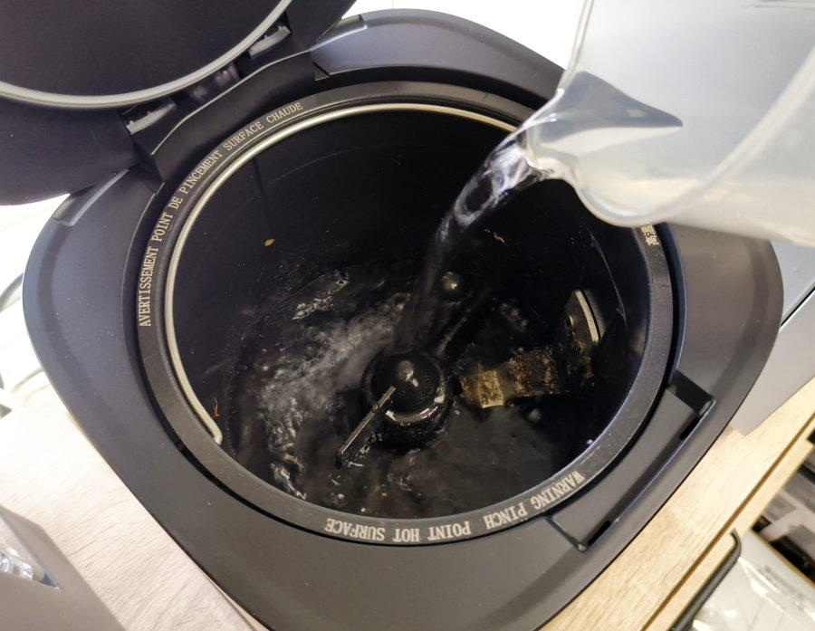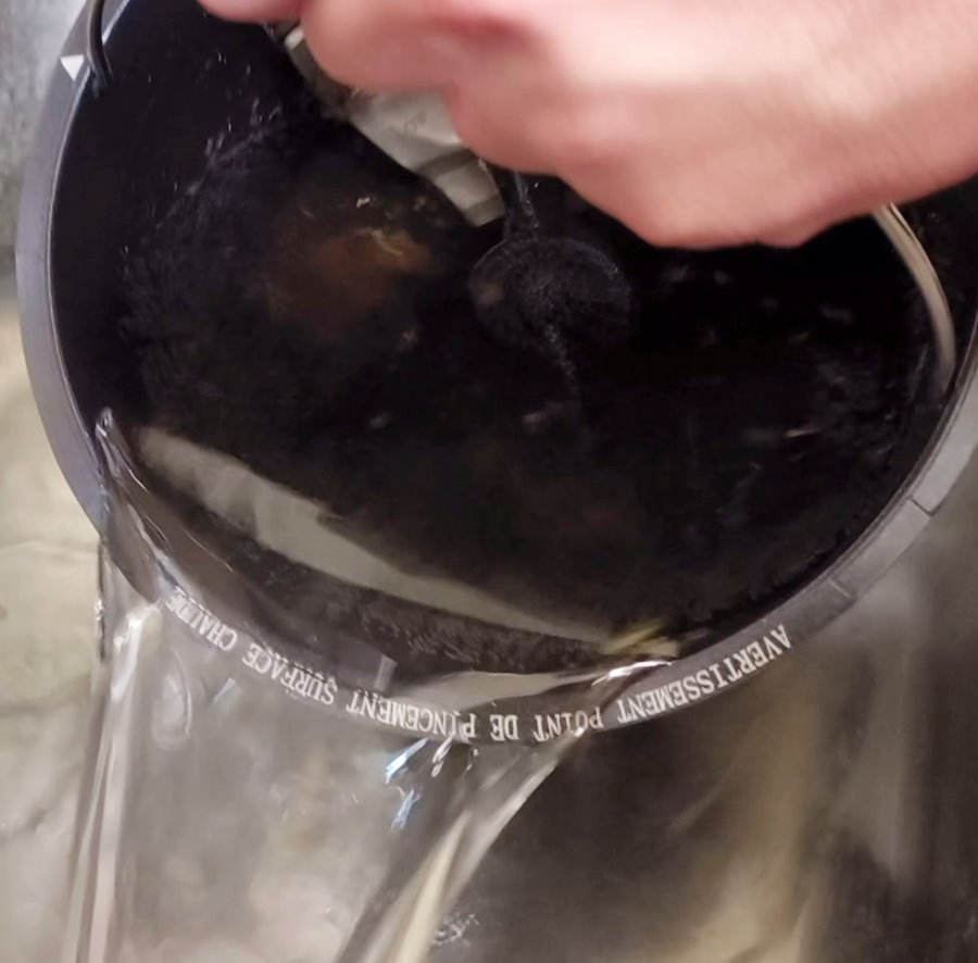 ▼30分鐘一到,等內桶稍微冷卻一下即可將汙水、殘渣倒出,完全不沾手,也不需要用手進去喇一喇,整個就乾淨溜溜啦!
