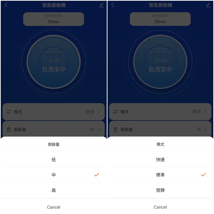 ▼APP還可以設定模式、廚餘量、清潔或烘乾功能等等,上頭也會有目前的工作狀態可供參考!