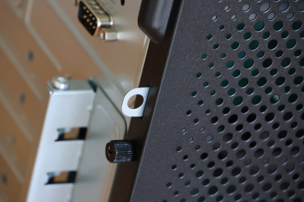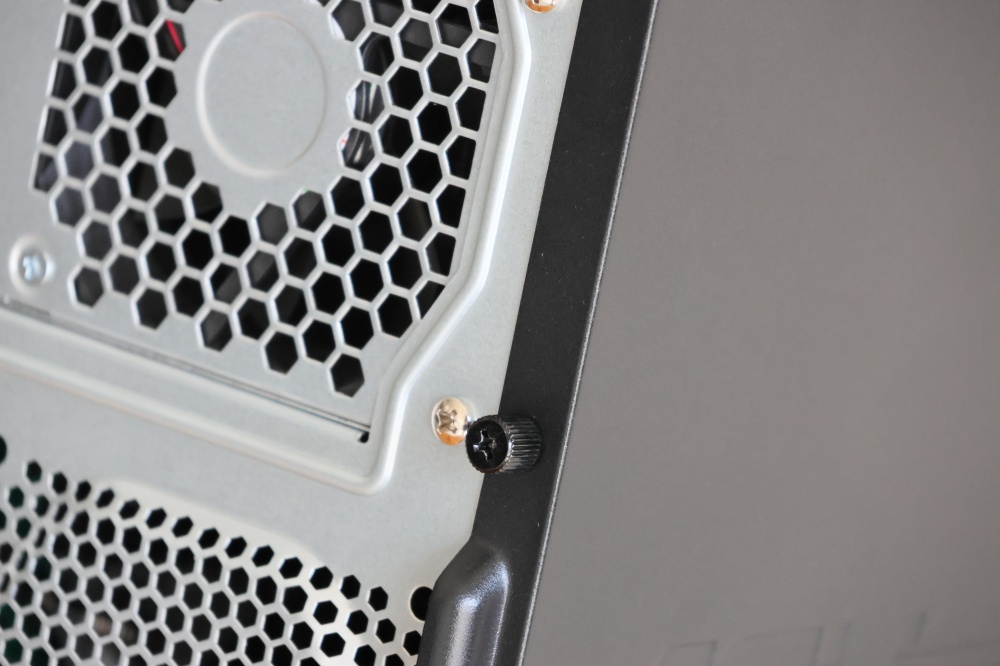 整座 ExpertCenter D7 Tower 採用免工具拆卸的設計,機殼後方的固定螺絲只要徒手就可以旋轉下來,不用出動螺絲起子。